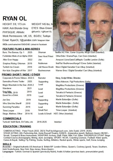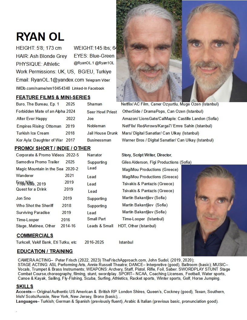 Versatile Actor-Writer-Voice Artist with pre-visualization talents, story & character creation, and screenwriting experience. Authentic TCK background: raised across multiple continents and cultures, bringing genuine lived-in global perspective and cultural fluidity to roles requiring international sophistication or cross-cultural authenticity. Native dual accent base- .authentic, seamless Standard American and Standard British/RP, plus natural Transatlantic with effortless US/UK interchangeability; genuinely multilingual with proficiency in Turkish and German, Spanish, Italian, previously. More about Unique, Original, Authentic Traits